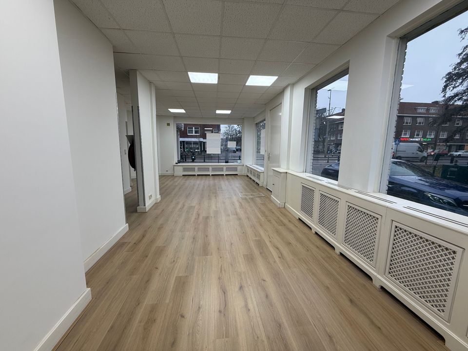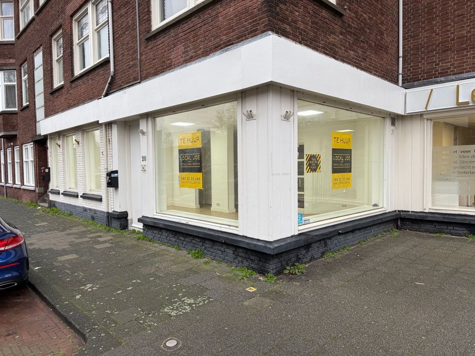 Winkelruimte te huur van in totaal circa 86,85 m² BVO, gelegen aan de Aarnout Drostlaan 26 te Den Haag. De winkelruimte ligt in het Laakkwartier, op de hoek met de Goeverneurlaan, een doorgaande weg met diverse bedrijvigheid en woningen.