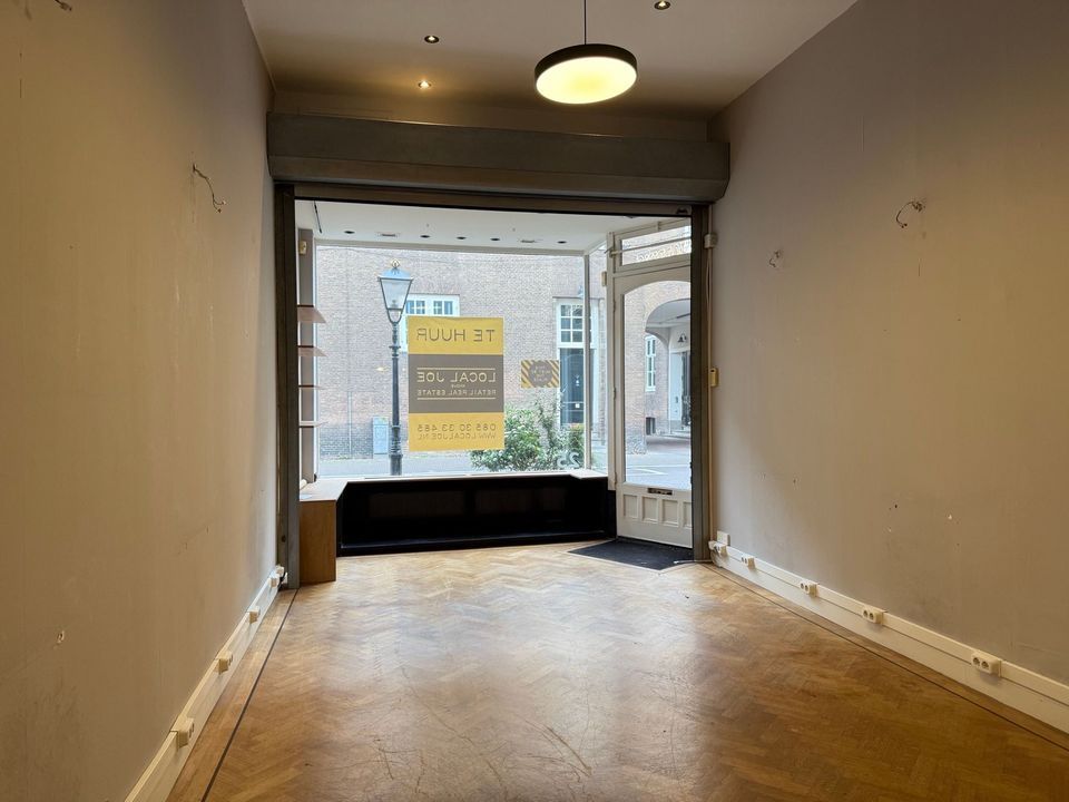 De winkelruimte ligt tussen SVET Cosmetic en de entrée van Q-park Noordeinde.