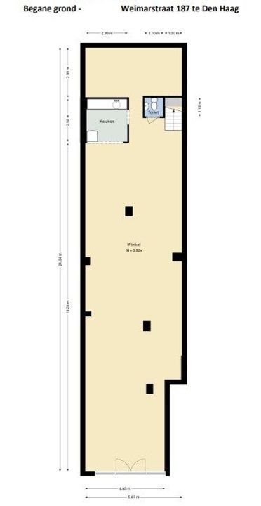 Onverhuurde winkelruimte / kantoorruimte te koop van in totaal circa 145,22 m² BVO, gelegen aan de Weimarstraat 187 te Den Haag. De Weimarstraat is een winkelstraat in de Haagse wijk Regentessekwartier. Er zijn nationale ketens te vinden, maar ook lokale ondernemers. Ook is er gezellige horeca gevestigd.